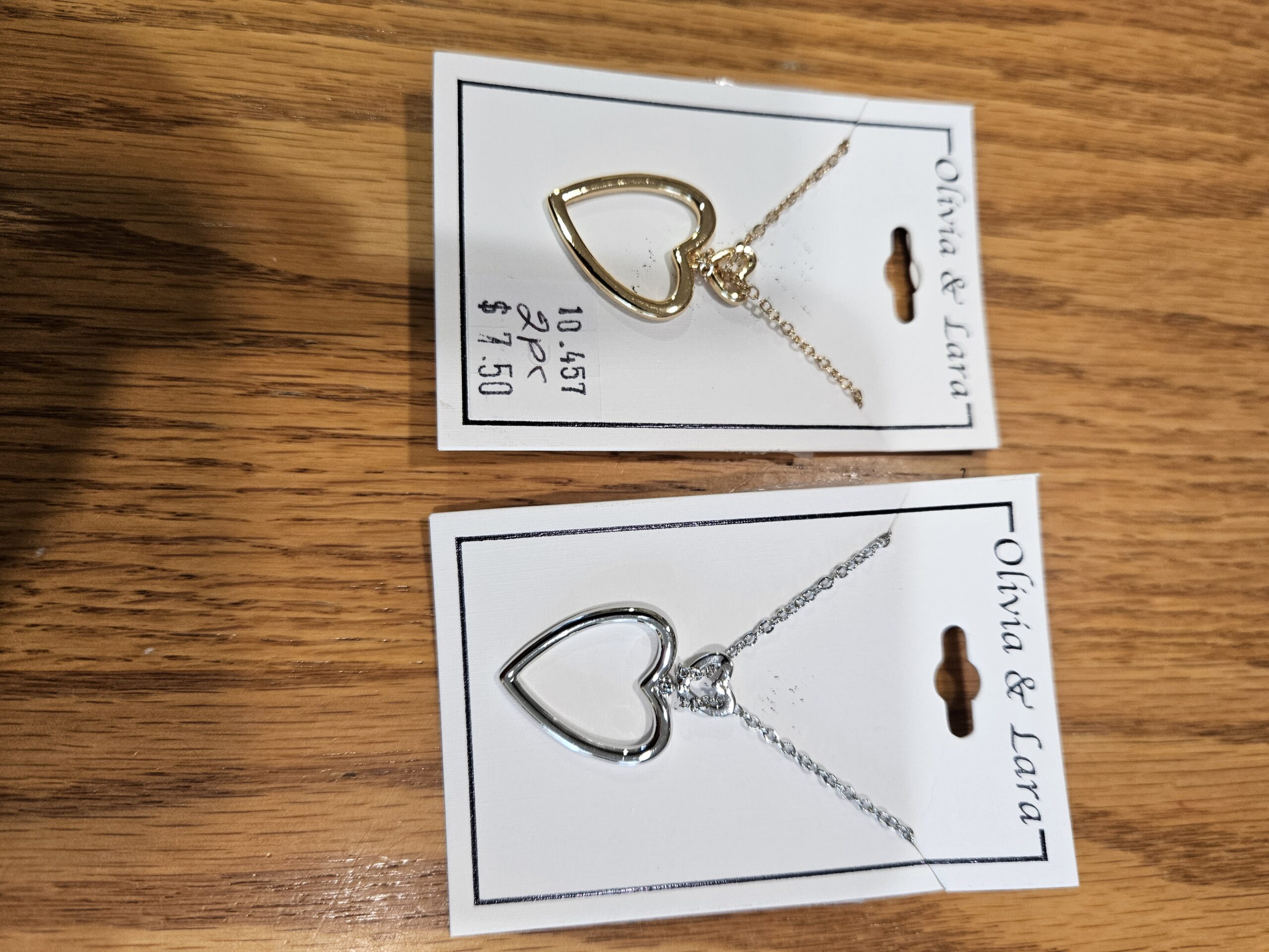10-457AB 2 Vertical, Open Hearts Necklace Gold & Silver (2 unit / $7.50ea)
