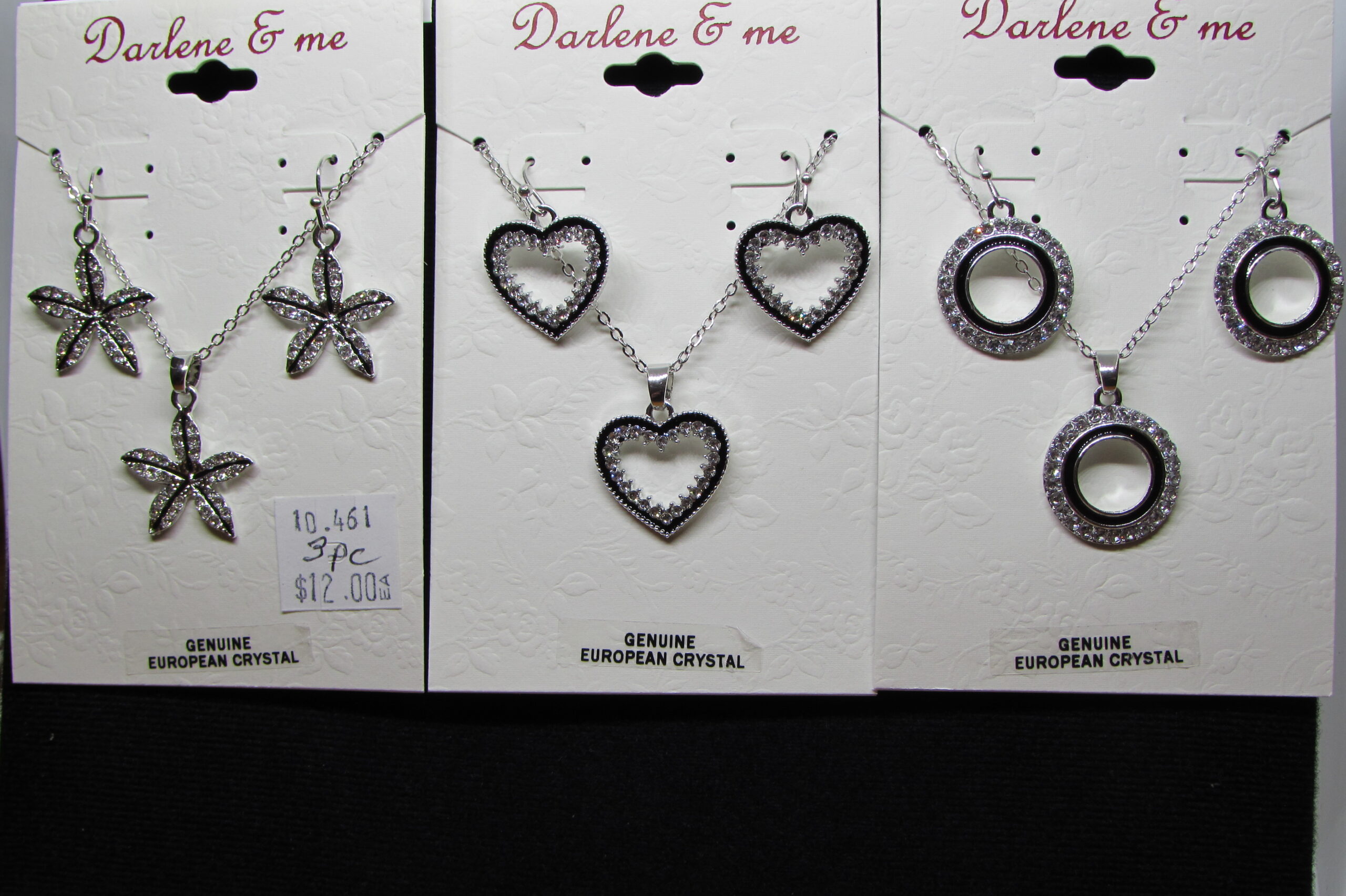 10-461ABC 3 Styles Necklace & Earring Sets W/Crystals & Black Accents (3 unit / $12.00ea)