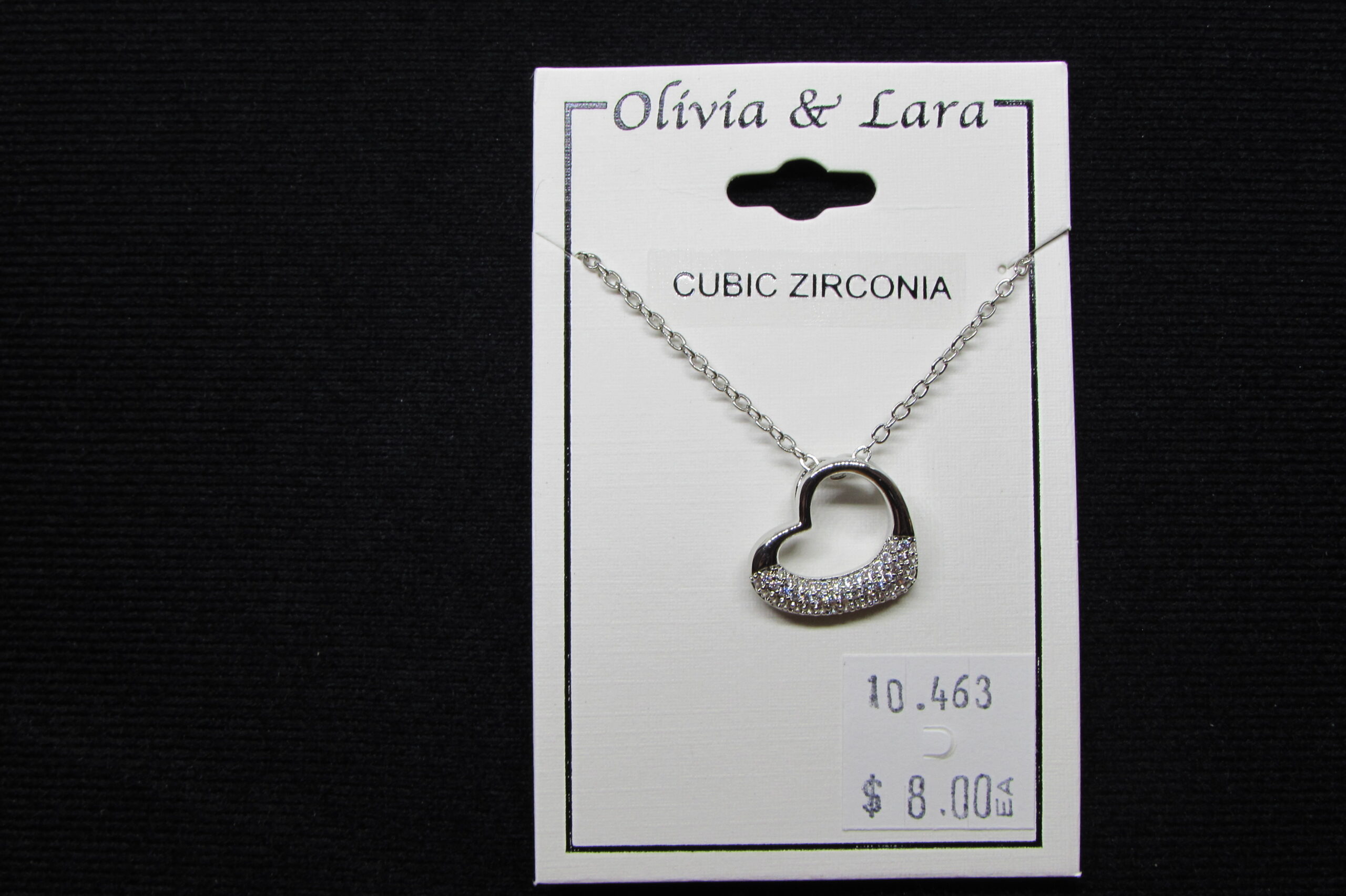 10-463 CZ Floating Heart Necklace, Silver (1 unit / $8.00ea)
