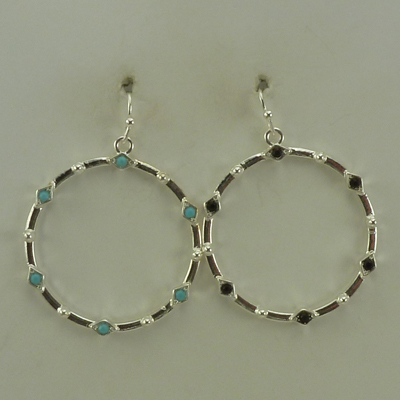 44-1922 Asst Stone – Hoop Drop 2 Colors, Silver W/ Turq or Black (2 Units / $7.00 each)